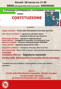 Baronissi – Incontro – Autonomia differenziata dei ricchi contro la Costituzione