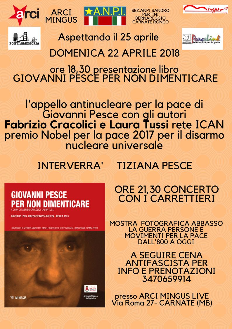 CARNATE – Presentazione libro – Dall’impegno per la Pace di Giovanni Pesce contro l’energia nucleare al Premio Nobel per la Pace con ICAN