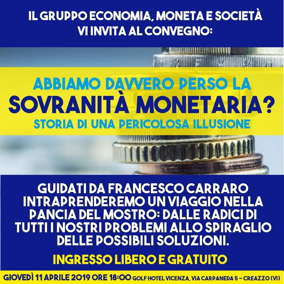 Creazzo – Incontro – Abbiamo davvero perso la sovranità monetaria?