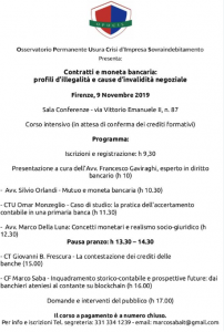 Firenze – Corso – Contratti e moneta bancaria: profili d’illegalità e cause d’invalidità negoziale.