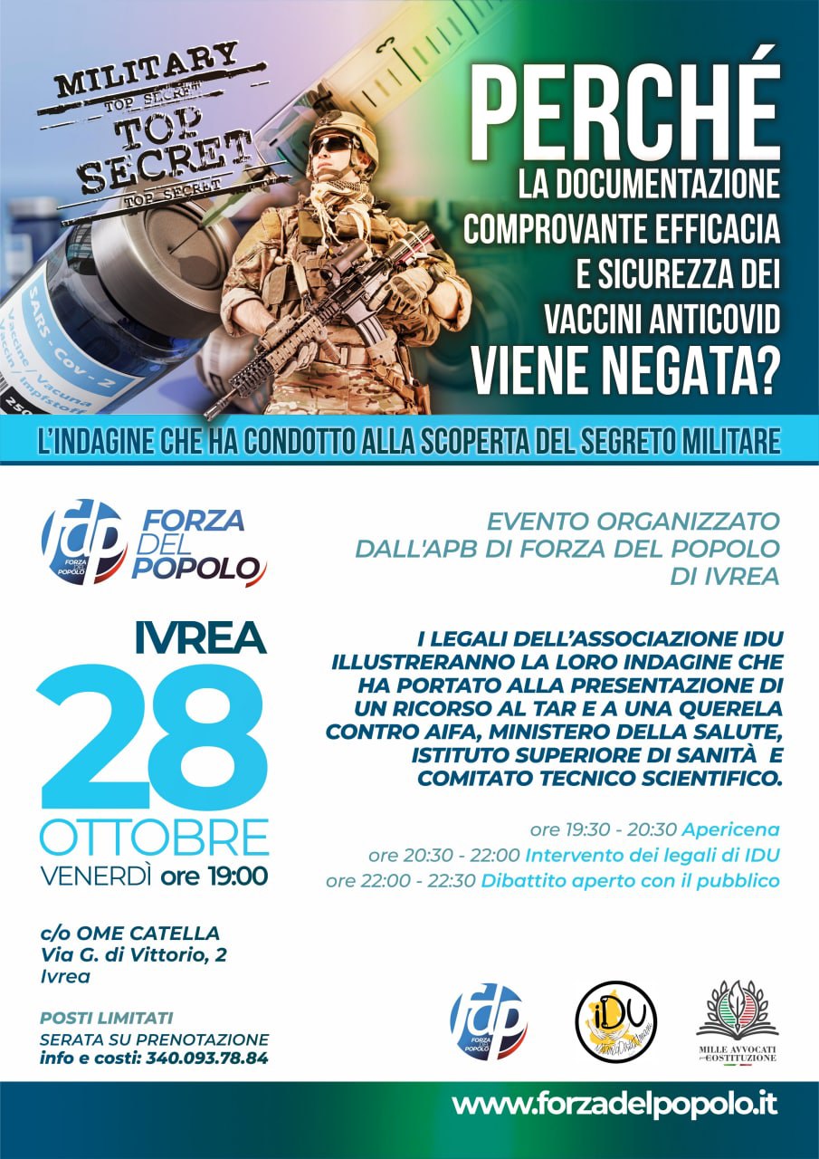 Ivrea – Incontro – Perché la documentazione comprovante sicurezza ed efficacia dei vaccini anticovid viene negata?