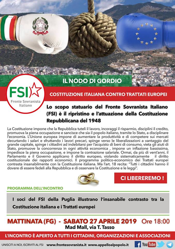 Mattinata – Incontro – Il nodo di Gordio: Costituzione Italiana contro Trattati Europei