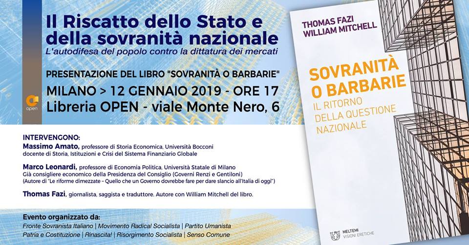 Milano – Il Riscatto dello Stato – Presentazione “Sovranità o Barbarie”