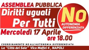 Napoli – Incontro – NO Autonomia Differenziata – Diritti uguali per tutti!