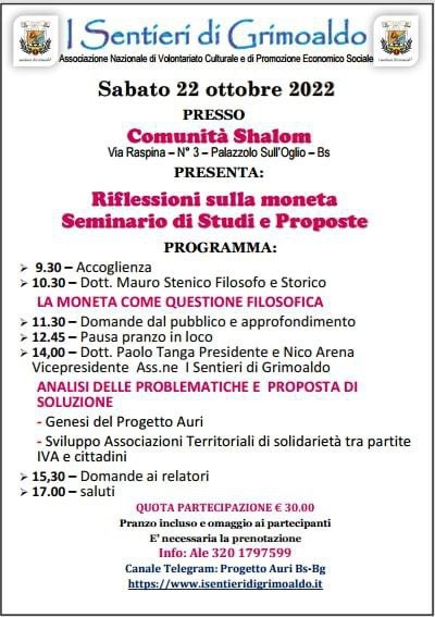 Palazzolo sull’Oglio – Riflessioni sulla moneta – Seminario di studi e proposte