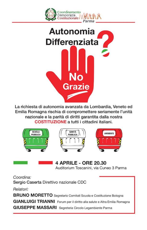 Parma – Incontro – Autonomia Differenziata? No Grazie