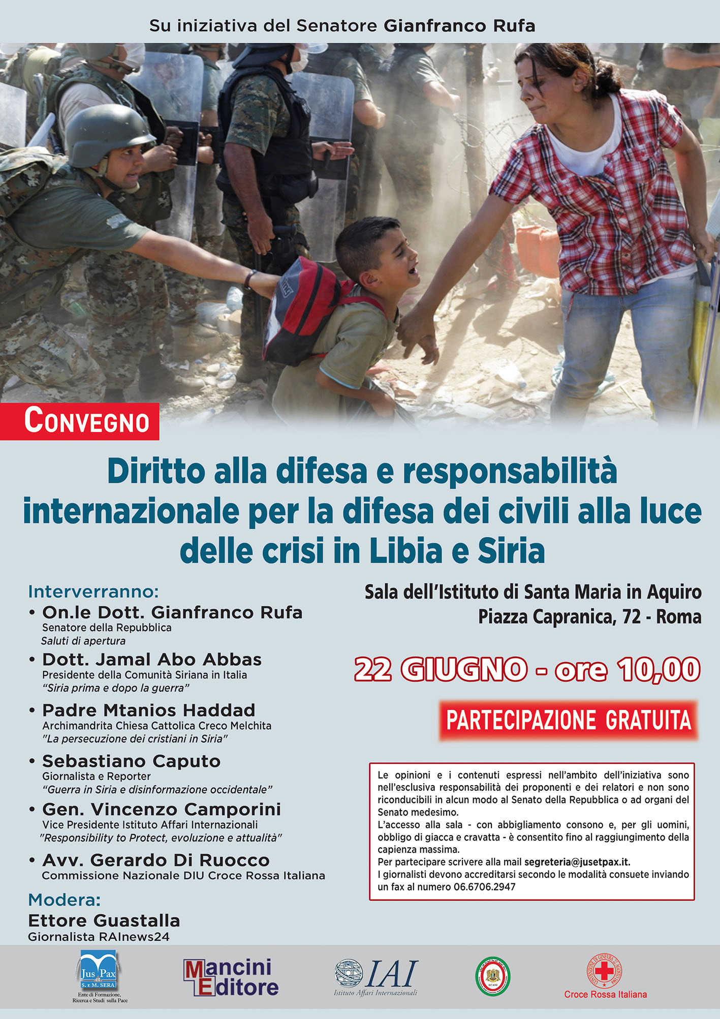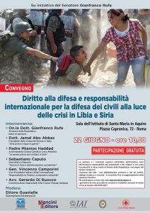 Roma – Convegno – “Diritto alla difesa e responsabilità internazionale per la difesa dei civili alla luce della crisi in Siria e in Libia”