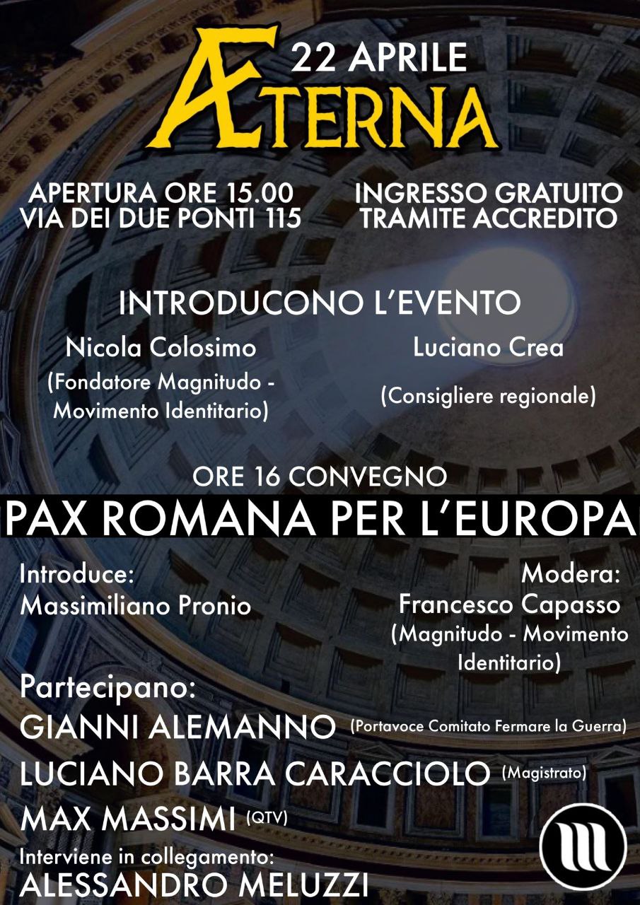 ROMA – CONVEGNO – PAX ROMANA PER L’EUROPA