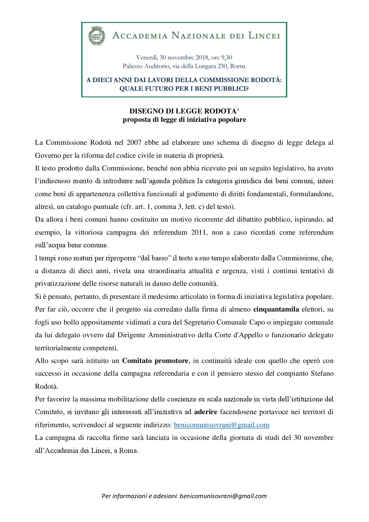 Roma – Incontro – A dieci anni dai lavori della commissione Rodotà: Quale futuro per i beni pubblici.