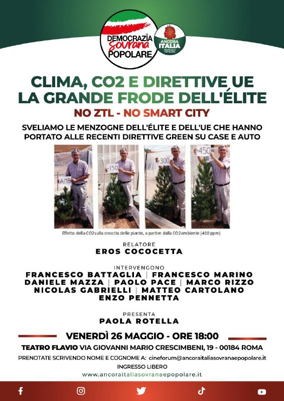 Roma – Incontro – Clima, CO2 e direttive UE, la grande frode dell’élite