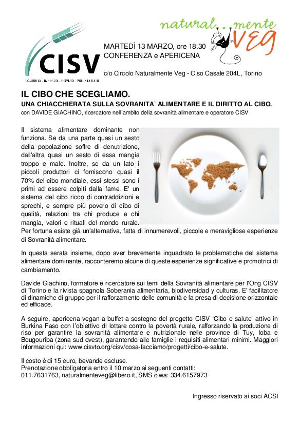 Torino – Incontro – Sovranita’ Alimentare E Diritto Al CIBO – Conferenza + apericena.