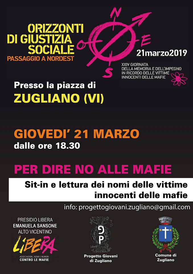 Zugliano – Incontro – Per dire no alle mafie, Sit-in e lettura