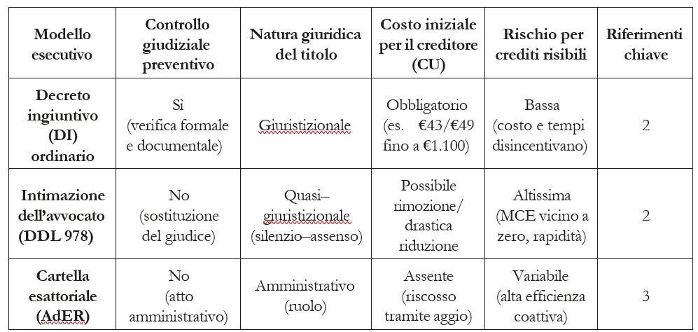 Tabella 1. Comparazione dei modelli esecutivi stragiudiziali.