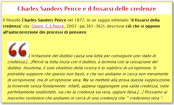 Un buon esempio di costruzione delle credenze l’ha fornito il filosofo Charles Sanders Peirce nel saggio “Il fissarsi di una credenza“.