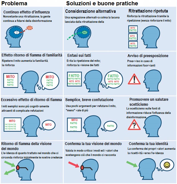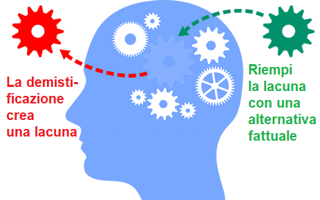 I disinformatori creano dei falsi miti. I demistificatori (debunkers) devono fornire verità scientifiche con le quali colmare gli spazi mentali occupati dai falsi miti.